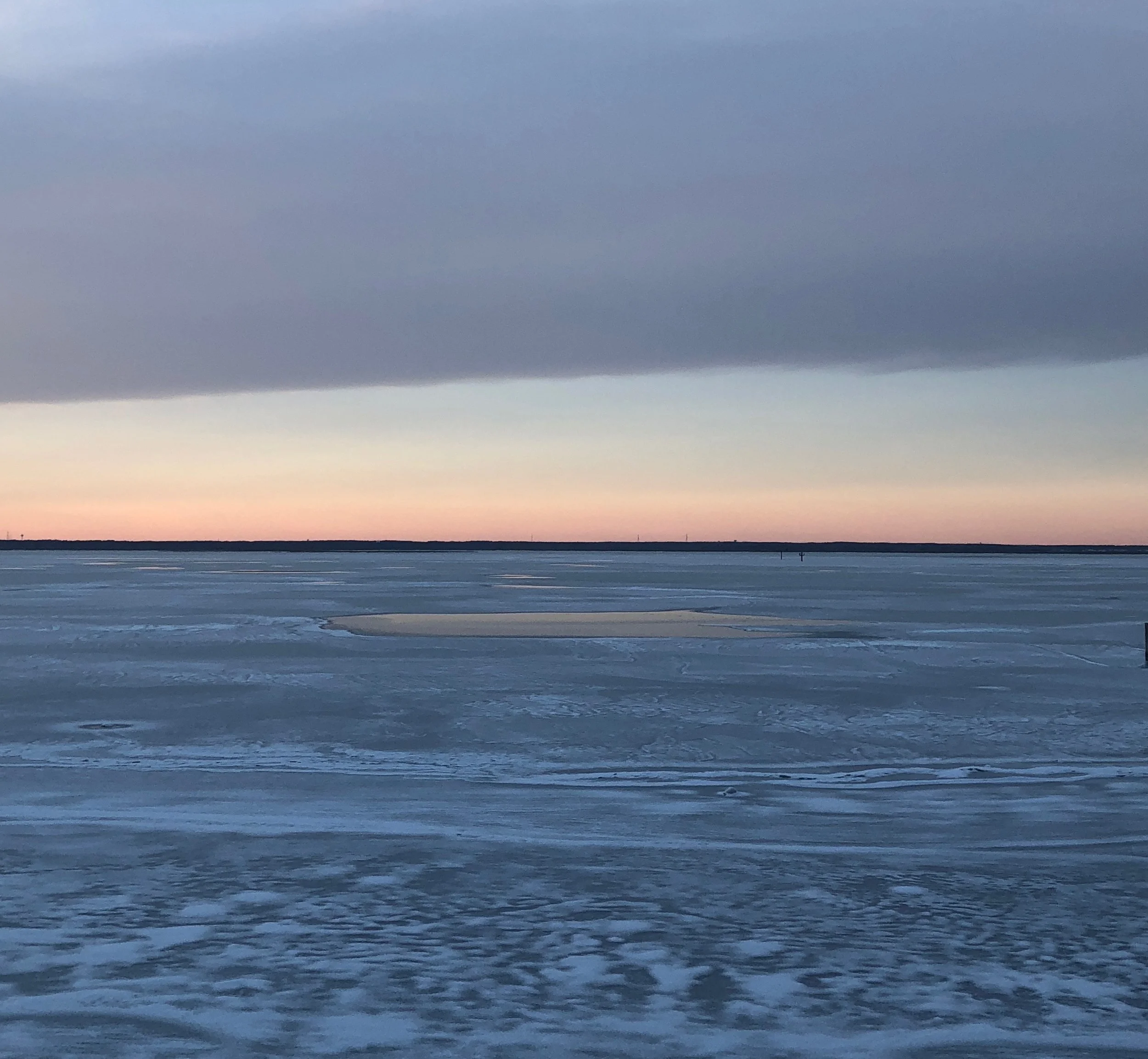 Frigid temps on the bay present a gorgeous frozen golden hour.